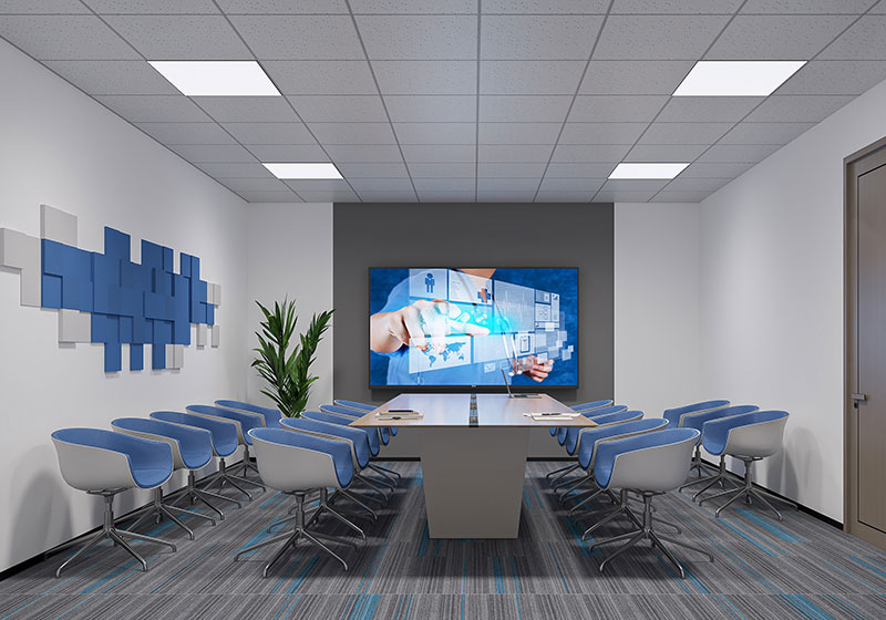 會(huì)議區(qū)選用灰白拼接辦公椅,搭配長(zhǎng)條會(huì)議桌,適配團(tuán)隊(duì)協(xié)作需求;大屏顯示設(shè)備與墻面綠植相襯,在實(shí)用功能中注入活力。整體布局貼合濟(jì)南辦公室裝修的實(shí)用與美學(xué)結(jié)合趨勢(shì),既滿足企業(yè)技術(shù)交流場(chǎng)景,又彰顯科技公司的專業(yè)質(zhì)感。